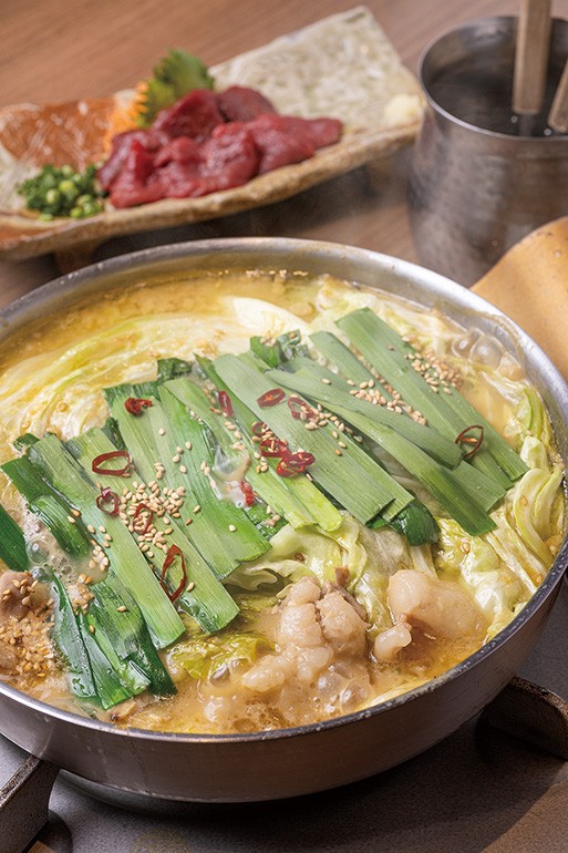 九州の食材や調味料を使った、こだわりの九州料理を楽しめる。看板メニューは白味噌と醤油から味を選べる博多名物のもつ鍋。ぷりぷり食感の新鮮な和牛もつに濃厚なスープ、キャベツやニラの甘みがよく合い、やみつきに。熊本から取り寄せた馬刺しも人気。50名まで利用可能な個室も備え、年末年始の集まりにもぴったりだ。ランチは御膳や定食などボリューミーなメニューが豊富にそろう。