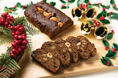古代小麦を使ったドイツパンが評判のベーカリー「ケルン」では11月下旬から、古代小麦アインコーンとオーガニック小麦を使ったシュトーレンを販売する。アインコーンは抗酸化物質「ルチン」やミネラル、食物繊維などの栄養分が豊富に含まれていることが特長。しっかりとした歯ごたえがあり、小麦本来の甘みと程よい酸味が味わえる。クルミやヒマワリ、パンプキンの種をたっぷりとのせた3種とココア味の計4種。いずれも生地には小麦粉の分量の約4倍のドライフルーツがふんだんに練り込まれ、食べ応えもばつぐんだ。