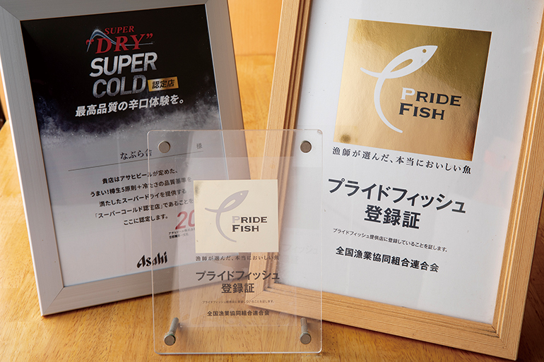 全国各地の漁師が自信を持って推奨する“プライドフィッシュ”を提供するお店として認定されており、季節ごとの魚のおいしさを堪能できる。漁協等とタイアップしたイベントを不定期で開催。