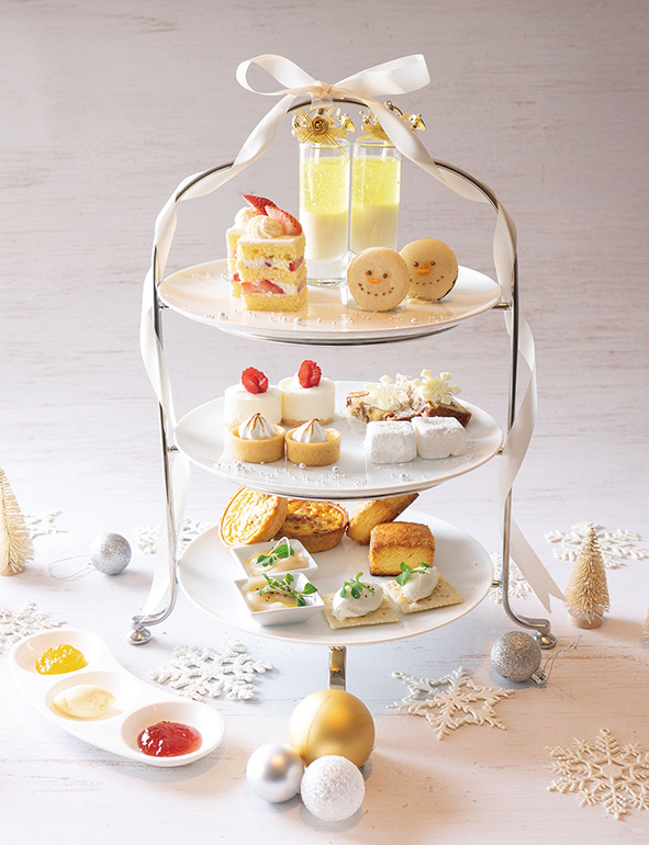 ホテルモリノ新百合丘にある「ひだまりのレストラン ル シェル モリノ」では、冬季限定の「スノークリスタルアフタヌーンティー」を堪能できる。白身魚のカルパッチョやキッシュなどのセイボリーのほか、イチゴのショートケーキやヘーゼルナッツ味のマカロン、レモンタルトなど、食感や甘みと酸味をバランスよく組み合わせたスイーツを楽しめる。ゆったりと優雅な時間を過ごしてみては。