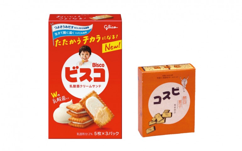 十分な栄養がとれていなかった昭和初期に、栄養効果が期待された「酵母」入りのお菓子として誕生。商品名は「酵母ビスケット」の略称「コービス」から「ビスコ」となった。時代に合わせてリニューアルを繰り返し、現在は乳酸菌入りに。