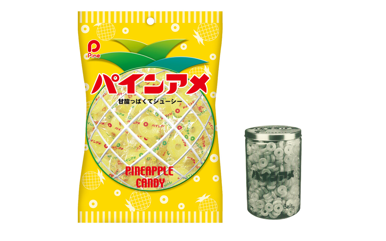 戦後の傷跡が残っていた当時の日本は、生のパイナップルはもちろん、缶詰も高級食品だった。そんな時、「このパイン缶のおいしさをみんなが手軽に味わうことができたら」との思いから、パインアメが誕生したという。
