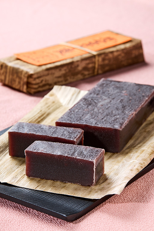 竹の葉に包まれ、なめらかな輝きを放つ「本煉(ほんねり)」は古来の製法とこだわりの材料が生み出した羊羹の最高峰だ。一昼夜水に浸した小豆を2時間かけて高温で練り上げるため、コシが強く糖度が高いのが特長。昔は特産品の鋳物鍋を使って高温で練り上げたため、仕上がりはより黒く「黒煉」と呼ばれた。通気性と抗菌性に優れた竹の皮は季節や天候に応じて水分を調整してくれると、根強い人気だ。日本が誇る菓子の原点を改めて味わってみたい。