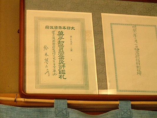 「『以前はお店の前がメイン通りだったのよね』って、お客さんに言われることがありますよ」と話すのは、明治18年(1885)創業の御菓子司 寿々木(4)のお店の方。壁の額に飾られた「大日本帝國政府 菓子卸売営業免許鑑札」を見上げ、ほぅとため息が出ます。「多くの人がここを通って丸山教へお参りに行き、よく帰りにおまんじゅうをお土産に買ってくれたそうですよ」。道ひとつにもそれぞれの歴史があるものです。