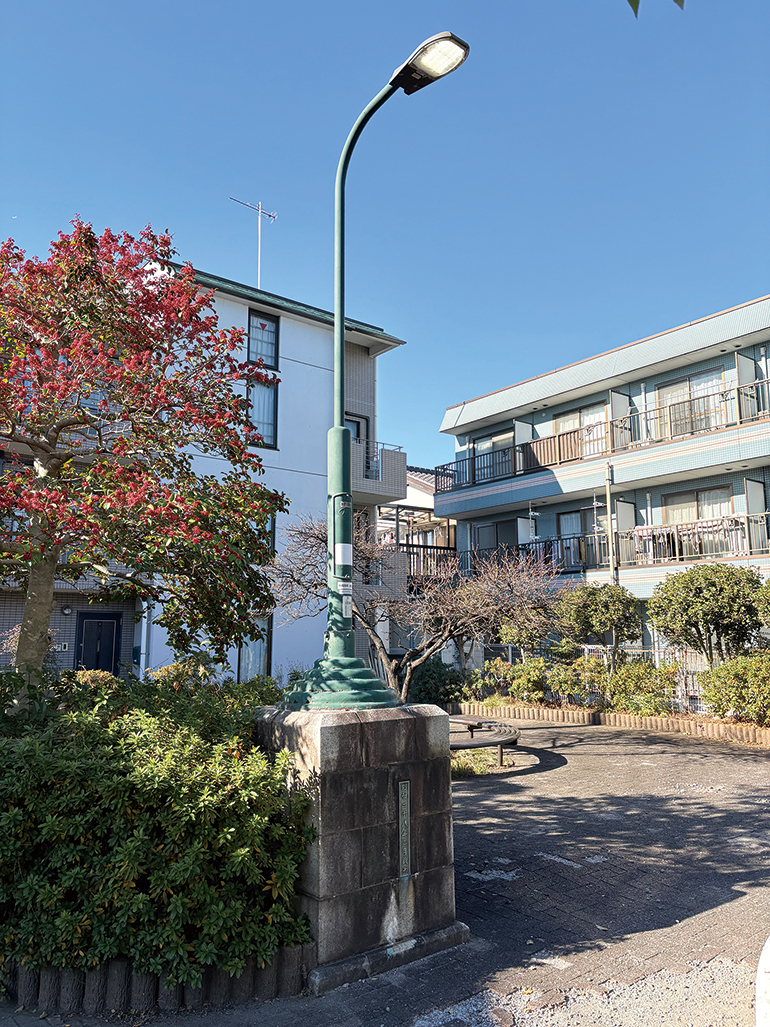 また橋のそば、多摩沿線道路沿いの小さな公園には、旧多摩水道橋の親柱が街灯とともに残されています。そこには竣工した「昭和28年」と記された銅板の文字もあり、昔の多摩水道橋の名残を伝えています。今の多摩水道橋のそばで旧親柱が橋の安全を見守っているのかもしれませんね。皆さんも、ぜひ富士山とセットでその親柱も見つけてみてね。